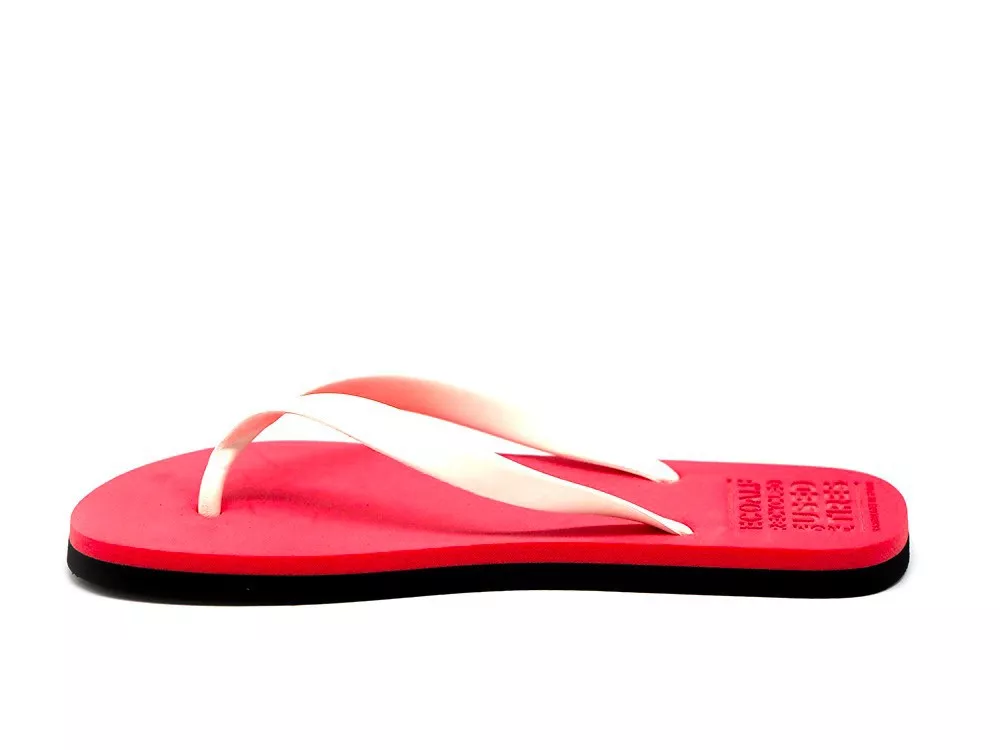 Ikoniczne, zrównoważone japonki w wesołych kolorach już są! Wykonane ręcznie w Hiszpanii z opon pochodzących z recyklingu, które są mielone na proszek, oddzielane od metalu, który zawierają opony, a następnie prasowane i podgrzewane, aby uformować podeszwę. Skrawki i skrawki są następnie przerabiane na paski.