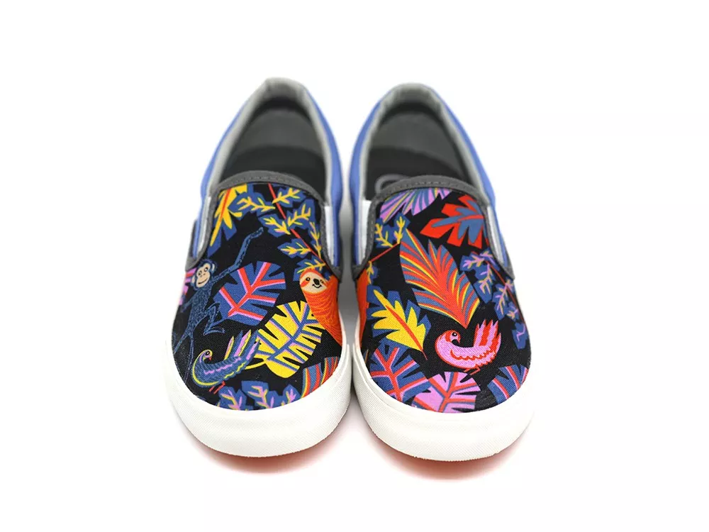 Inkkas Slip On są dowodem na to, że nie trzeba iść na kompromis w kwestii designu i jakości. Zwłaszcza model Quetzal to nie tylko przyjemna dla oka mieszanina kolorów i kształtów. W rzeczywistości, ma super miękką wewnętrzną wyściółkę, wzmocnione szwy na pięcie i wysokiej jakości wyjmowaną wkładkę z podparciem łuku. Na uwagę zasługuje również ważny i tradycyjny dla filozofii Inkkas detal w postaci kuli ziemskiej umieszczonej na podeszwie buta.