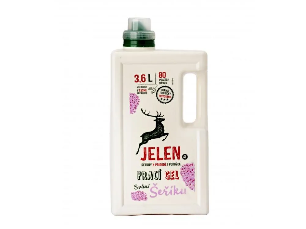 Dzięki swojemu składowi, żel do prania Jelen o zapachu bzu jest delikatny dla wrażliwej skóry i nie powoduje reakcji alergicznych.