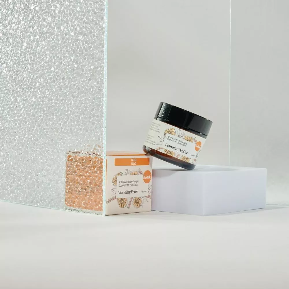 Zawartość opakowania: Kvitok Bity krem do ciała Wieczór świąteczny (60 ml), Kvitok Twardy balsam do ciała Wieczór świąteczny (40 g), Kvitok Mieszanka olejków eterycznych Wieczór świąteczny (10 ml)
