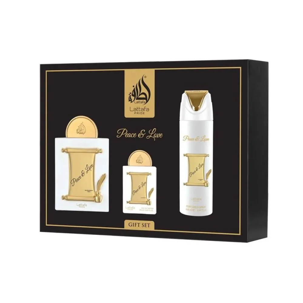 Opis produktu Lattafa Pride Peace & Love EDP 100 ml + EDP 20 ml + DEO w sprayu 200 ml UNISEX