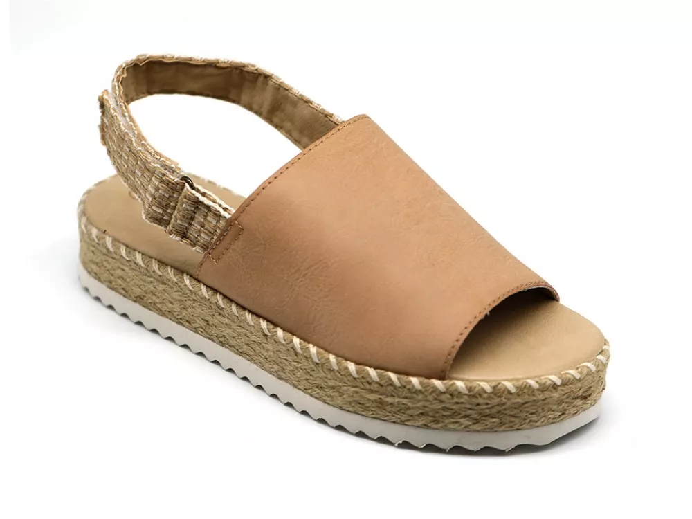 Sandały na podwyższonej platformie w kolorze starego różu. Podeszwa wyłożona jutą pasuje do paska na rzep. Na plażę, do miasta, na letniego grilla z przyjaciółmi, po prostu wszędzie tam, gdzie cenisz sobie komfort przez cały dzień.