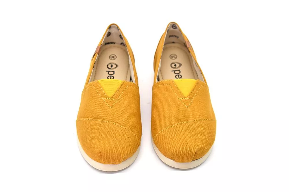 Rozjaśnij swój strój i dzień żółtymi espadrylami Perky Desert Sun 2022. Wykonany ręcznie w Brazylii z bawełny organicznej i przetworzonego PVC nowy model espadryli będzie idealny zarówno na słoneczne letnie dni, jak i szarą jesień.
