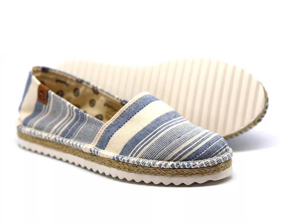 Pasiaste i wygodne espadryle idealne na letnie dni. Bawełniana tkanina zapewnia oddychalność, a komfort użytkowania gwarantuje trwała podeszwa z amortyzującej pianki EVA. Dopełnieniem jest szykowne obszycie z juty.